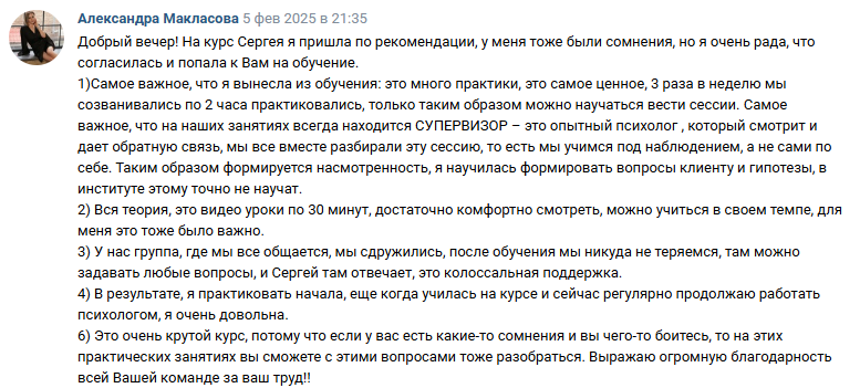 ✔ стала супервизором на курсе Психолог-практик.
