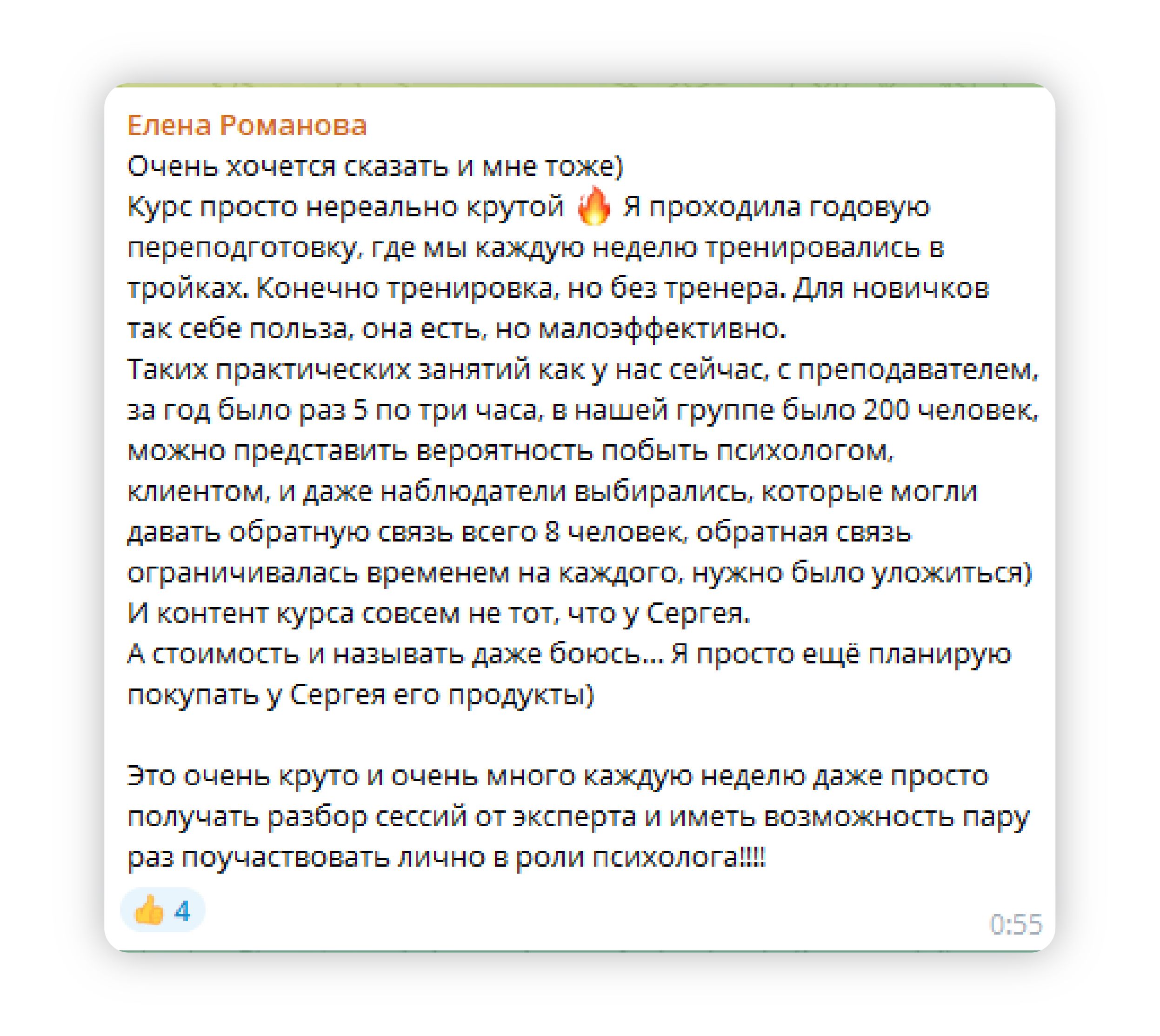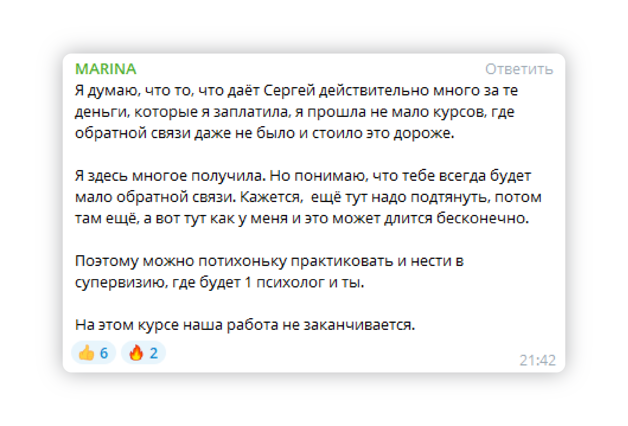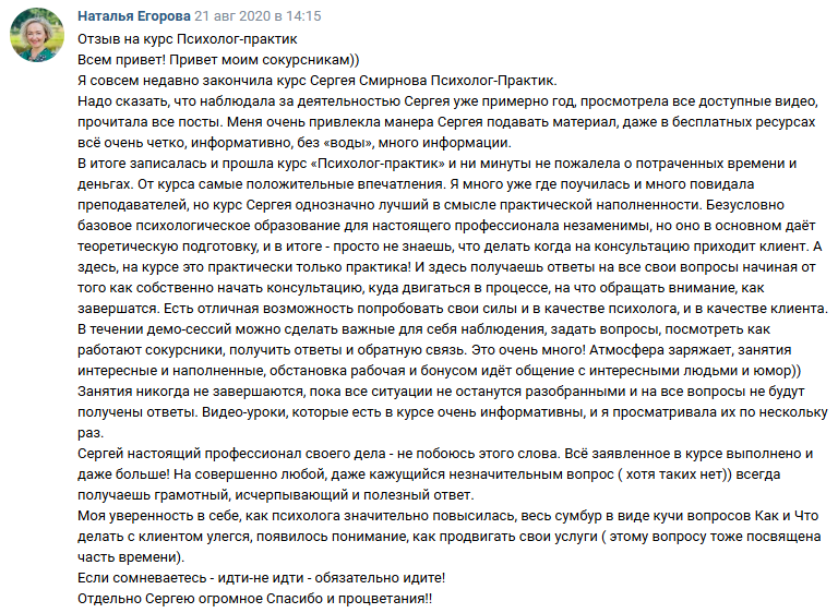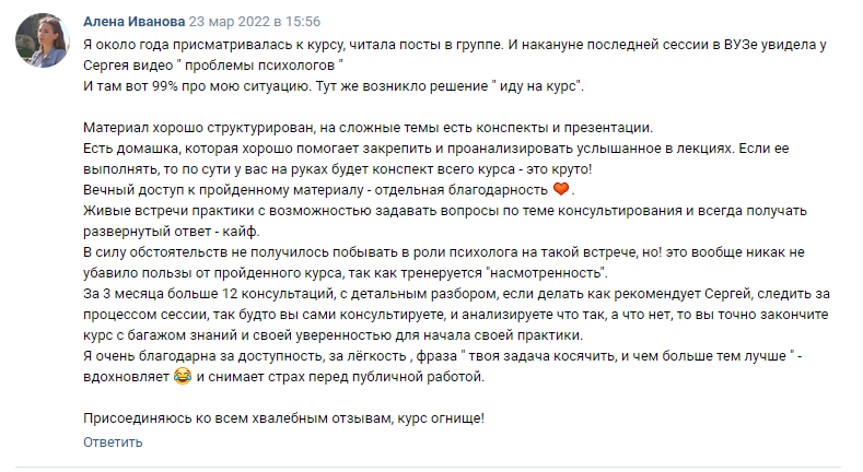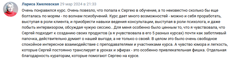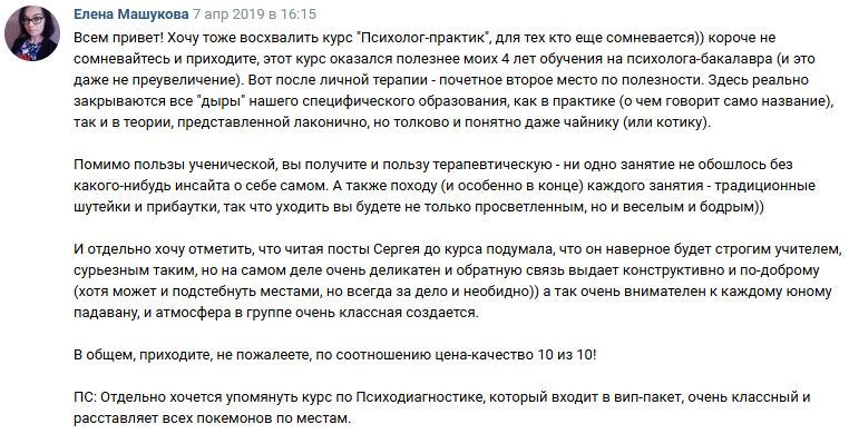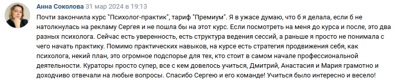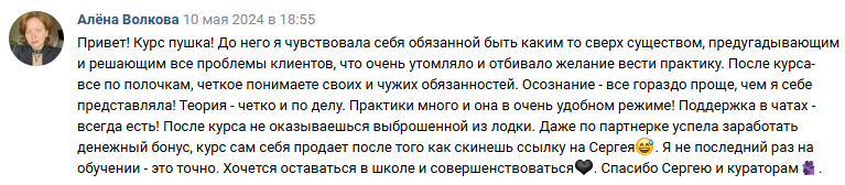 - потратила на другие обучения сильно больше стоимости курса Сергея, в итоге не получила никакой конкретики, только теория.