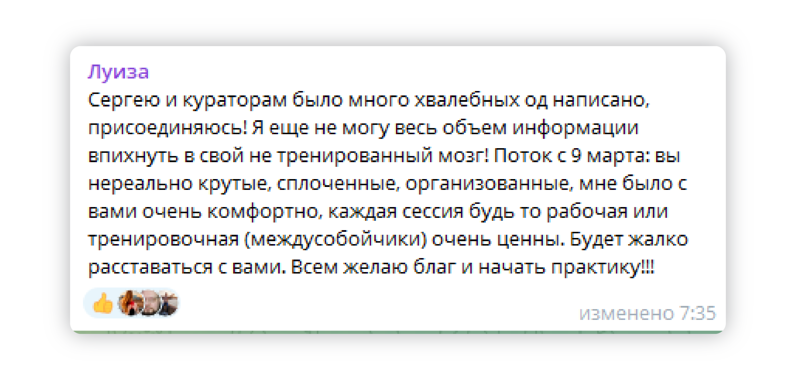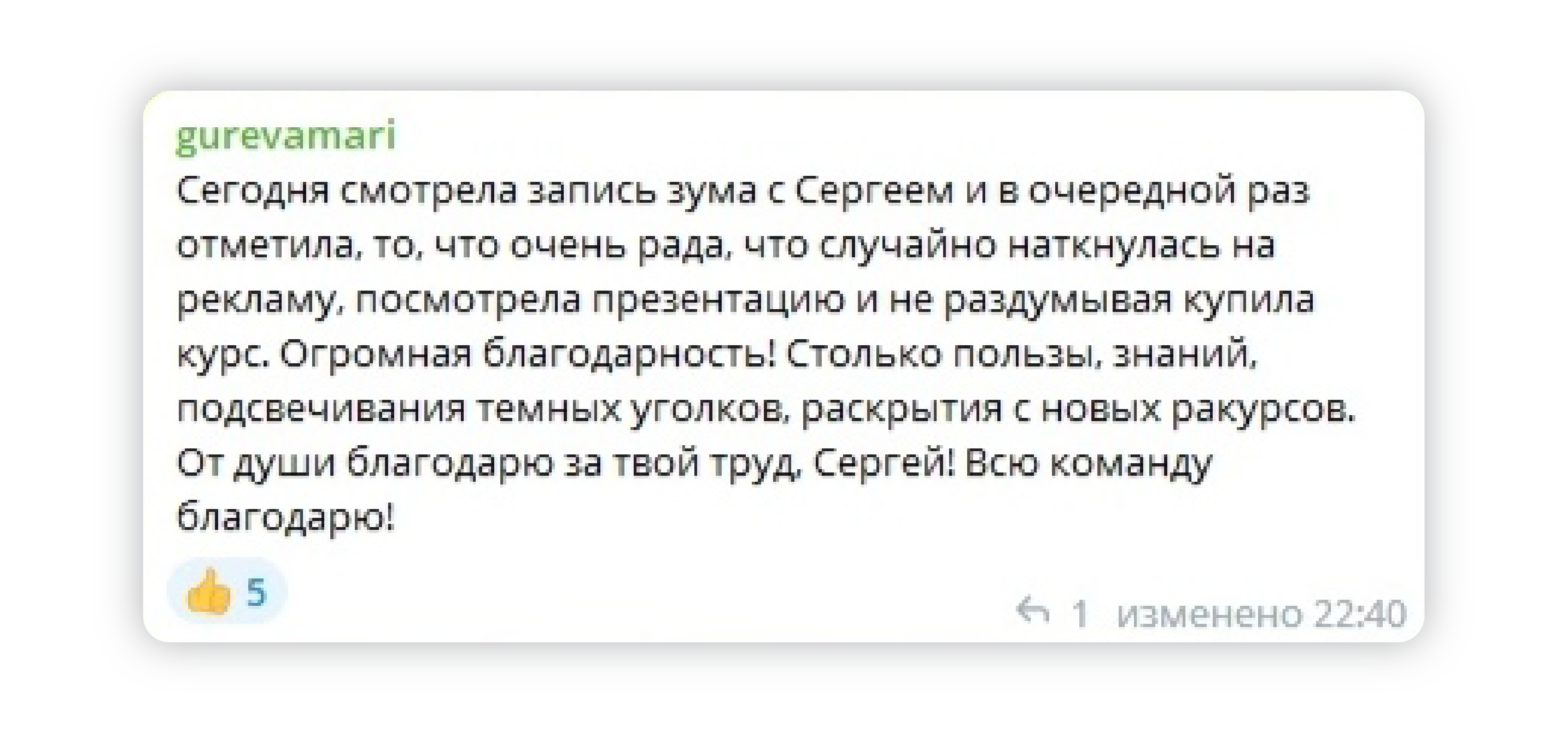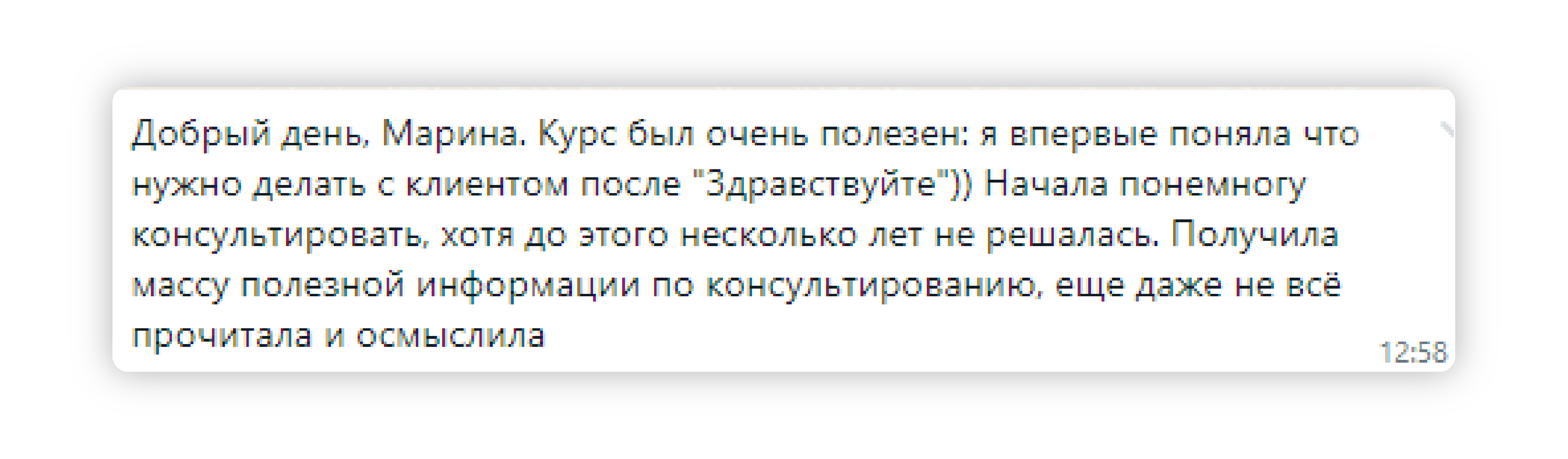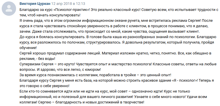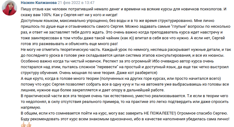 ✔ получает развернутые отзывы от клиентов, которые заметили изменения в работе
