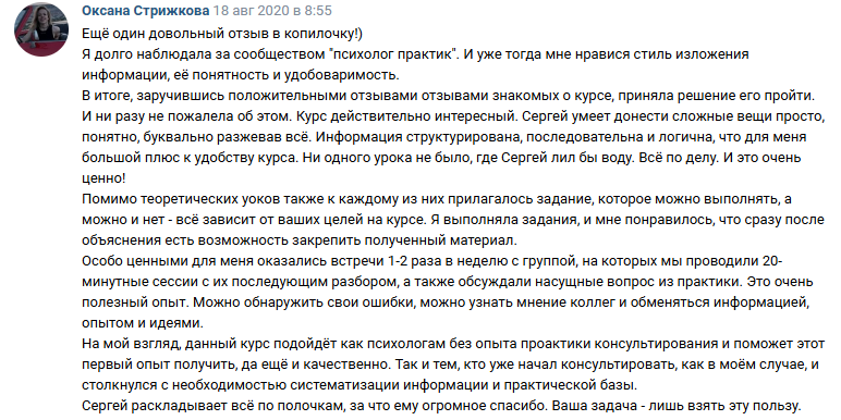 ✔ пошла учиться в институт на КПТ-терапевта и осознала, что уже знает суть многих классных КПТ-шных штук благодаря Сергею